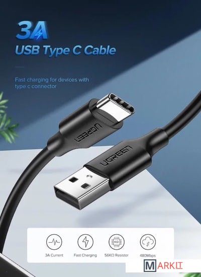 USB-кабель Ugreen поддерживает технологию быстрой зарядки QC 2.0 / 3.0.Передача файлов со скоростью 480 Мбит/с.